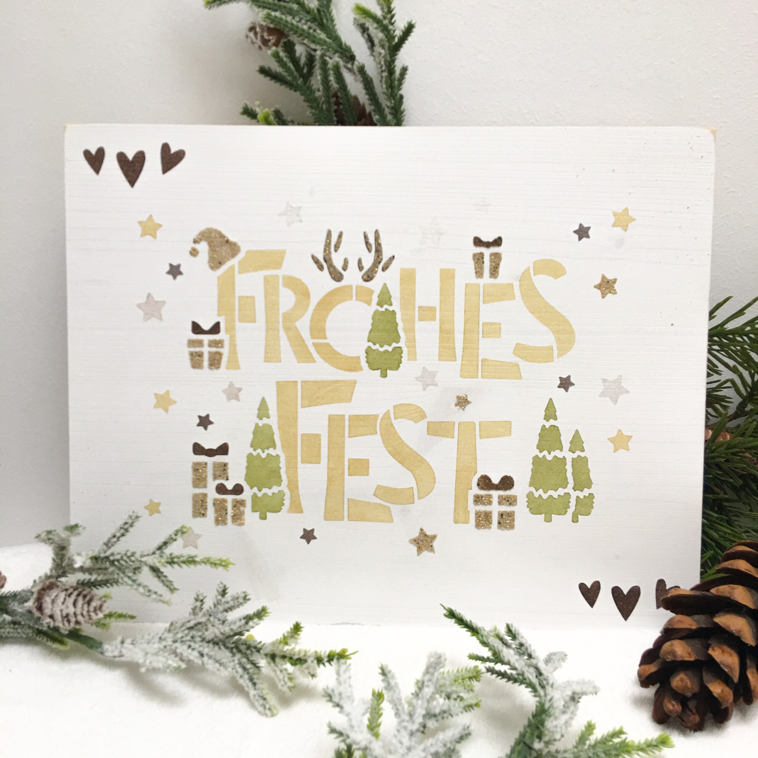 Weihnachtliches Bild aus Fichtenholz mit