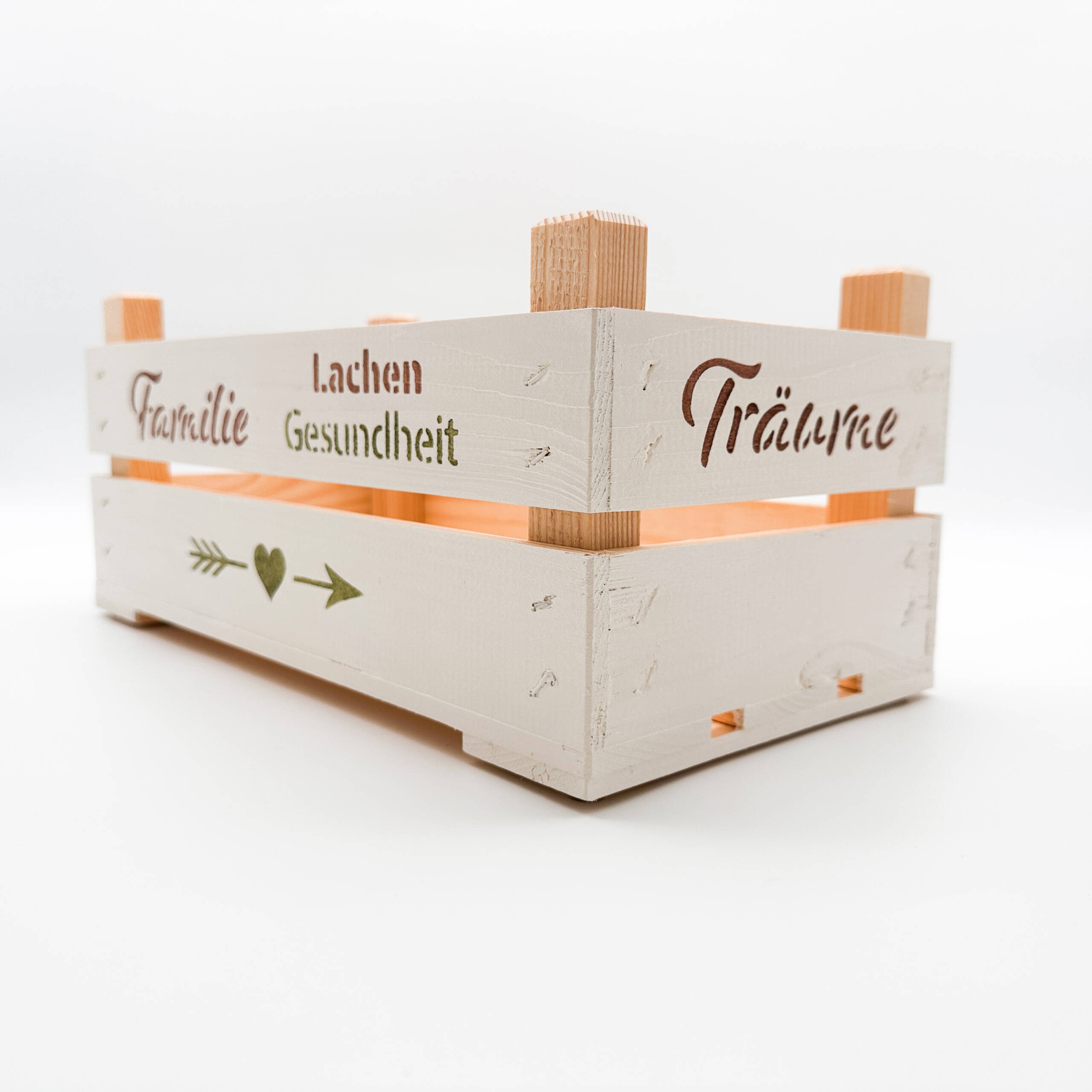 Diese kleine liebevoll gestaltete Holzkiste ist als Geschenkbox, Erinnerungskiste oder zur Dekoration bestens geeignet! Für all die kleinen und großen Glücksmomente des Lebens.